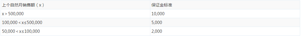 也就是說如果你之前已經(jīng)交過2000的保證金,上月的銷售額沒有超過10萬的話,保證金還是2000,不用補繳;若銷售額超過10萬、少于50萬,就需要補繳3000保證金。記得及時補繳,否則會影響店鋪的運營的!