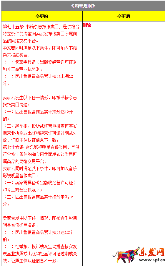 1、《淘寶規(guī)則》中第七十五、七十六條書籍雜志報(bào)紙、音樂影視明星音像等類目準(zhǔn)入條款,以及《關(guān)于加強(qiáng)淘寶網(wǎng)游戲軟件類目準(zhǔn)入的公告》中關(guān)于游戲軟件類目的準(zhǔn)入要求,均統(tǒng)一納入《淘寶網(wǎng)出版物行業(yè)標(biāo)準(zhǔn)》;