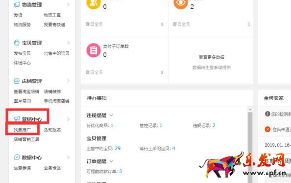 5、在打開的賣家中心頁(yè)面中,找到“營(yíng)銷中心”選項(xiàng)下的“我要推廣”選項(xiàng)