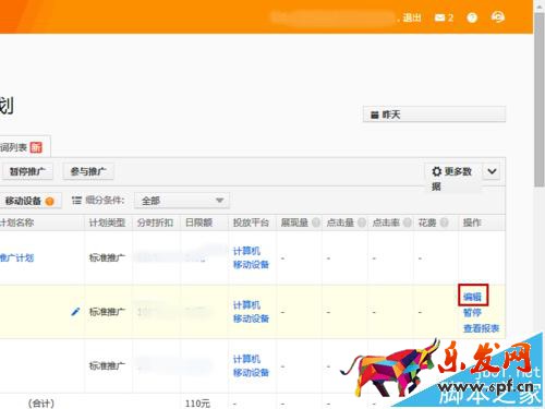 5、在【標準推廣】頁面上會顯示你已經(jīng)創(chuàng)建的活動,點擊你要設(shè)置的活動的編輯。