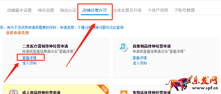 需要注意的是:在特種經(jīng)營(yíng)申請(qǐng)上,淘寶個(gè)人店鋪備案需先提交營(yíng)業(yè)執(zhí)照,但企業(yè)店鋪無需上傳營(yíng)業(yè)執(zhí)照。點(diǎn)擊【店鋪經(jīng)營(yíng)許可】,選擇你想申請(qǐng)的特種經(jīng)營(yíng)資質(zhì)點(diǎn)擊【查看詳情】,然后點(diǎn)擊【添加證明】,選擇營(yíng)業(yè)執(zhí)照,頁(yè)面就會(huì)跳轉(zhuǎn)到營(yíng)業(yè)執(zhí)照的上傳頁(yè)面。