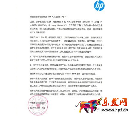 惠普在之前發(fā)布暗影精靈III代Plus游戲本時,官方宣傳中為了強調(diào)產(chǎn)品散熱效果,特別指出其采用雙風扇5根熱管的散熱設計。但當不少消費者拿到手后發(fā)現(xiàn)此前被重點宣傳的5根散熱管,竟變成了3根,紛紛表示不滿?;萜针娔X官微發(fā)布聲明,將對2017年8月1日到3日在大陸地區(qū)購買了該產(chǎn)品的玩家進行補償,如果玩家選擇退貨的話,則根據(jù)實際購買價格提供3倍現(xiàn)金補償。這就是蠻好的公關手段,所謂的“知錯就改、現(xiàn)金補償”,這在很多國家、很多領域都是行得通的。