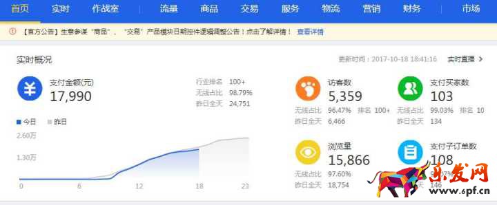 在生意參謀中的經(jīng)營概況中,我們可以看到網(wǎng)店的訪客數(shù),瀏覽量,支付金額,支付轉(zhuǎn)化率,客單價,退款金額和服務態(tài)度評分等數(shù)據(jù)。