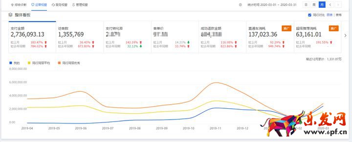 藍(lán)線表示自己店鋪 黃線表示同層同行平均 紅線表示同層優(yōu)秀