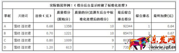 阿里媽媽官方后臺(tái)可以看到寶貝A、B、C、D四個(gè)寶貝,關(guān)鍵詞都是“雪紡 連衣裙”,在出價(jià)低于B的情況下,由于直通車原始質(zhì)量分A大于B,綜合排名A高于B,雖然同為10分的直通車后臺(tái)處理分,最終扣費(fèi)仍是A小于B。因?yàn)橹蓖ㄜ圀w現(xiàn)的最高處理的質(zhì)量分是10分,這個(gè)10分其實(shí)并不是最高真實(shí)的質(zhì)量分,直通車最高真實(shí)的質(zhì)量分,有的店鋪可以做到12-15左右。所以,很多情況直通車?yán)锩骟w現(xiàn)了10分的質(zhì)量分,你的真實(shí)排名可能高于這個(gè)質(zhì)量分,或者低于這個(gè)質(zhì)量分,綜合排名的高低,有直通車原始質(zhì)量分,也就是直通車權(quán)重來決定。