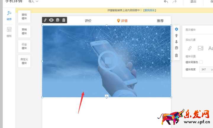 第一,用旺鋪編輯寶貝詳情頁,然后點擊插入模塊