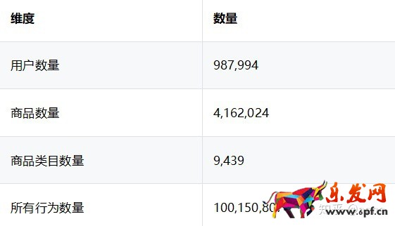 本數(shù)據(jù)集(UserBehavior.csv)包含了2017年11月25日至2017年12月3日之間,有行為的約一百萬(wàn)隨機(jī)用戶的所有行為(行為包括點(diǎn)擊、購(gòu)買、加購(gòu)、喜歡)。數(shù)據(jù)集的組織形式和MovieLens-20M類似,即數(shù)據(jù)集的每一行表示一條用戶行為,由用戶ID、商品ID、商品類目ID、行為類型和時(shí)間戳組成,并以逗號(hào)分隔。