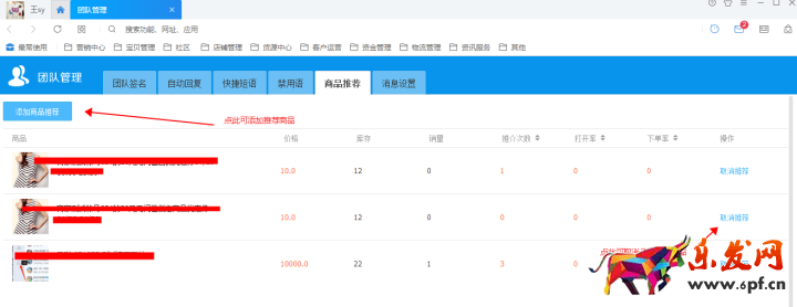 1.團(tuán)隊(duì)推薦設(shè)置入口,點(diǎn)“管理”進(jìn)入添加和取消推薦商品