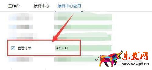 4、在“接待中心”項(xiàng)下,勾選“查看訂單”選項(xiàng)后,在后面的框中可以看到軟件默認(rèn)的快捷鍵組合,也可以按需更改,如圖所示。
