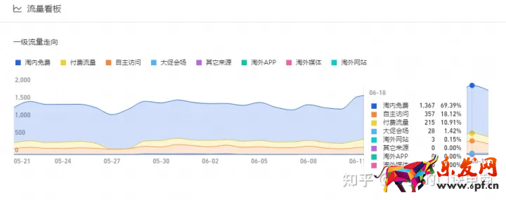 持續(xù)下拉可以看到流量看板,鼠標(biāo)點(diǎn)到曲線圖可以直接看到過去30天,付房流量占比排行和占比,免費(fèi)流量越多,付費(fèi)流量占比越少,店鋪越健康,一般付費(fèi)流量不低于10%最高不高于30%為最佳。