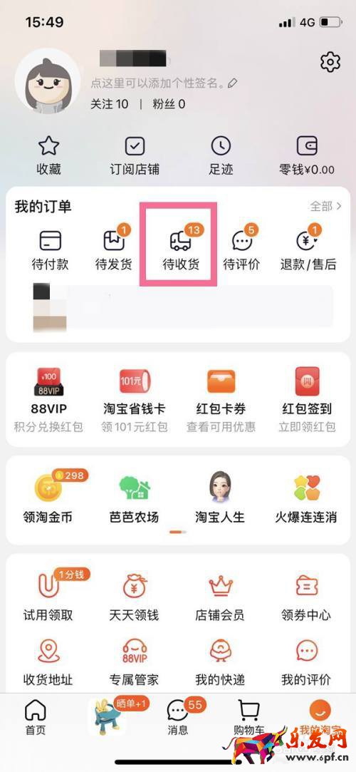 1、打開淘寶APP,在“我的淘寶”界面點擊【待收貨】。