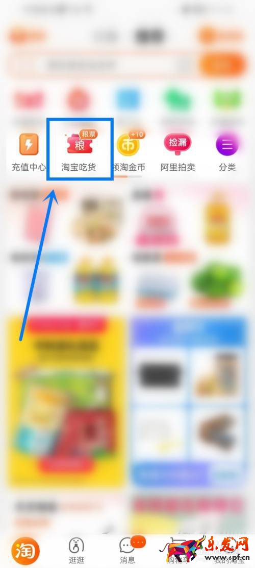 進入到淘寶吃貨界面,點擊右上角“糧票”圖標。