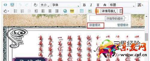 03、視頻上傳完成以后就可以發(fā)布寶貝了,在詳情描述里點(diǎn)擊 詳情導(dǎo)航模塊 新建模塊如下圖。如下圖所示: