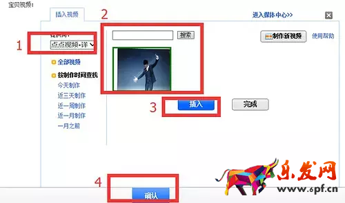 點擊“選擇視頻”按鈕后,1 先選擇左側(cè)提供商,選擇華通云視頻,就會出現(xiàn)您剛剛上傳的視頻,2 點擊您想添加的視頻,會有綠色的外框代表已經(jīng)選中,3 然后點擊插入,4最后點擊確定按鈕,寶貝就修改成功。可以進入詳情頁進行查看。