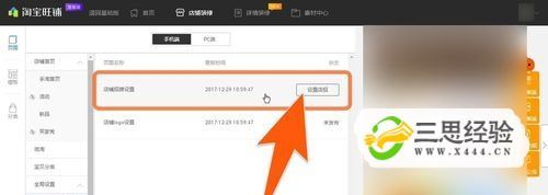 03然后將鼠標(biāo)移到店鋪招牌上面,就會(huì)顯示”設(shè)置店招”的字樣,點(diǎn)擊它,在彈出的店招設(shè)置頁上,將鼠標(biāo)移到右側(cè)上方的圖片上。