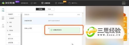 06保存后,在店招設(shè)置頁上的左側(cè),就會(huì)有了相應(yīng)的更改,現(xiàn)再點(diǎn)發(fā)布,就提示了“設(shè)置店招成功”,淘寶手機(jī)店鋪上的招牌基本就是這樣設(shè)置。