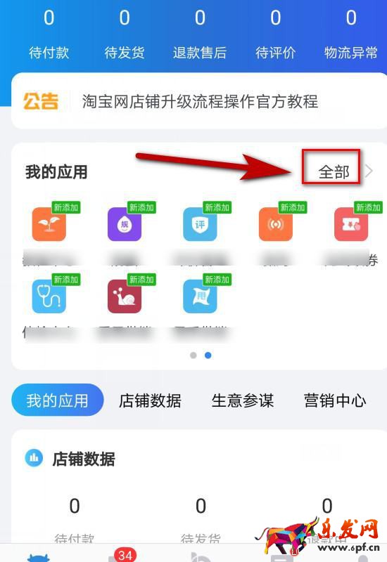 1、首先,在手機上打開千牛的APP軟件,在打開的主界面點擊我的應(yīng)用右側(cè)的全部。