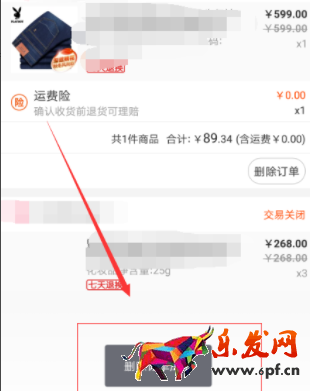 4、之后找到刪除訂單,點(diǎn)擊刪除,如下圖所示: