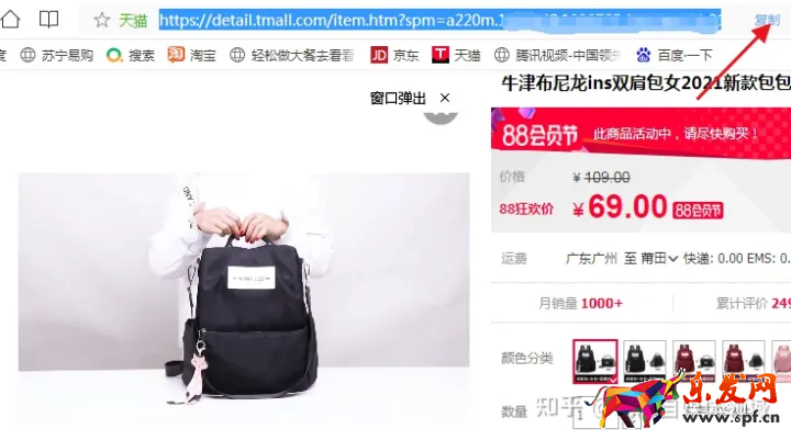 電腦瀏覽器打開天貓,選擇某個類目商品,進入商品頁面,挑選需要的商品