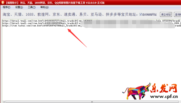 可以進(jìn)行多個(gè)商品一起批量下載,商品鏈接一行一個(gè)復(fù)制并粘貼到【載圖助手】軟件首頁的地址欄框里,如圖: