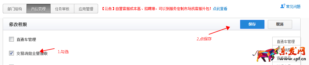 點(diǎn)擊修改權(quán)限進(jìn)去,然后往下拉,可看到千牛權(quán)限修改選項(xiàng)
