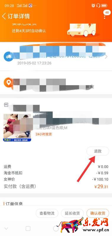 3、進(jìn)入訂單詳情頁,點擊退貨。