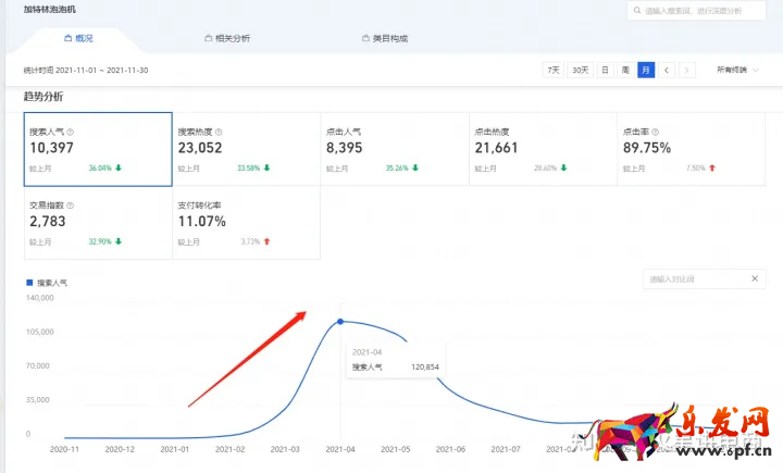 當(dāng)時(shí)的數(shù)據(jù)是這樣的,持續(xù)飆升了近2個(gè)月,后來季節(jié)和熱度都下滑了,才逐漸做不下去了,不過明年夏天要來之前,這依然會是一個(gè)非常厲害的爆款。
