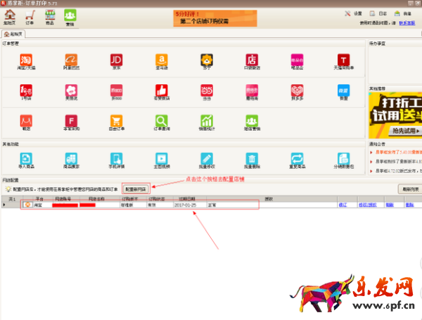1.下載易掌柜并安裝,然后登錄易掌柜,配置好您所需要的打印訂單的店鋪,(以淘寶平臺為例)
