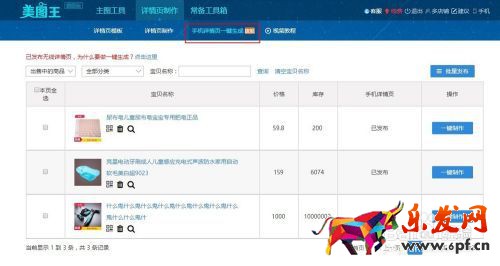 1 進入美圖王--詳情頁制作---手機詳情頁一鍵生成,出現(xiàn)寶貝界面