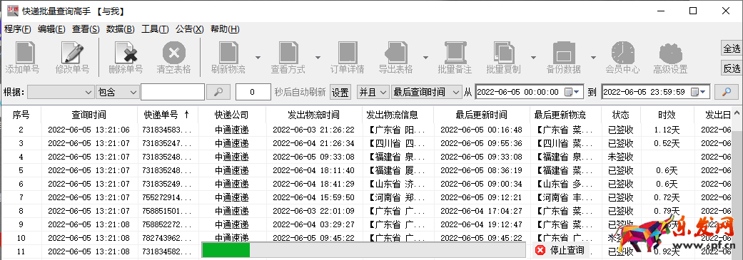 等全部查詢完畢,就可以看到每個快遞單號的物流情況,而且物流都是跟官網(wǎng)同步的