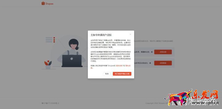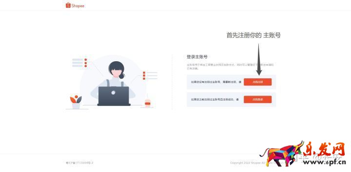跳轉(zhuǎn)下一頁(yè):點(diǎn)擊注冊(cè)蝦皮主賬號(hào),注意注冊(cè)完畢一定要記下來(lái),之前太多學(xué)員注冊(cè)后就給忘記 了,主賬號(hào)相當(dāng)于你的銀行卡賬號(hào),千萬(wàn)別小覷了!(如果之前有注冊(cè)直接登錄就好!)