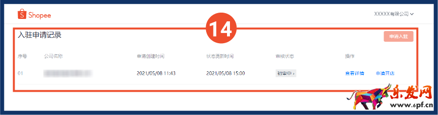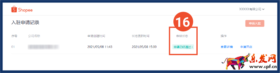 第十六步,隨時(shí)留意郵箱通知或自主到入駐記錄中查看,當(dāng)審核通過時(shí),狀態(tài)會(huì)更新