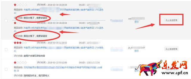 第二步:找到需要刪除的中差評訂單,點(diǎn)擊發(fā)動短信按鈕。。。