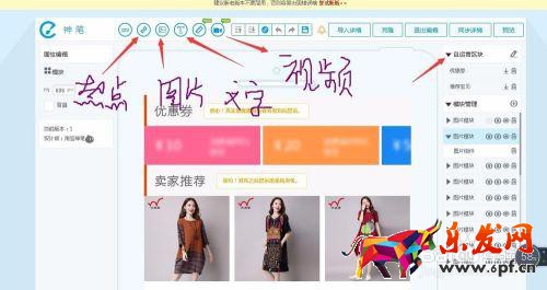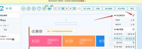 5 自運(yùn)營模塊就是添加優(yōu)惠券,賣家推薦和店鋪活動(dòng)的模塊,具體操作為,點(diǎn)擊自運(yùn)營模塊旁邊的鉛筆