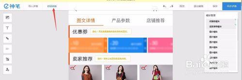 3 在寶貝編輯頁面里,左側(cè)是工具欄,右側(cè)是模塊管理。如果不太熟悉新版神筆的,可以切換到老版的神筆,老版的神筆有個(gè)比較強(qiáng)大的功能是可以添加熱點(diǎn)。本次我們側(cè)重介紹神筆的老版。點(diǎn)擊切回老版。
