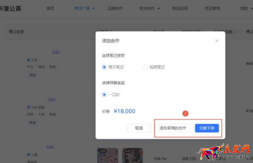 1)在博主廣場確定好意向博主之后,點擊【添加合作】后可以立即下單或者添加至我的合作。