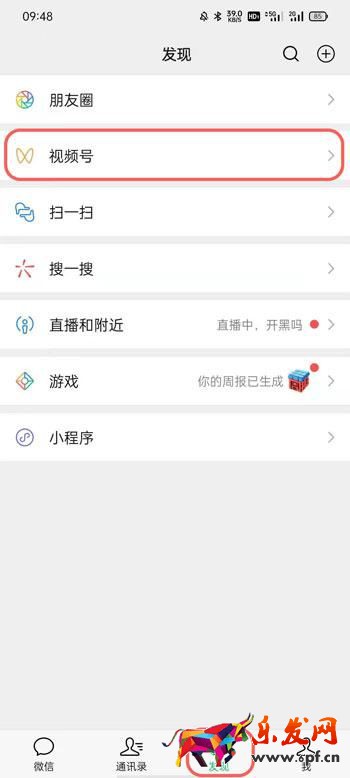1、打開手機微信,在發(fā)現(xiàn)頁面點擊【視頻號】進入微信視頻號中;
