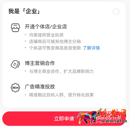 3 隨后選擇我是企業(yè),點(diǎn)擊下方的【立即申請(qǐng)】并提交申請(qǐng)材料即可。