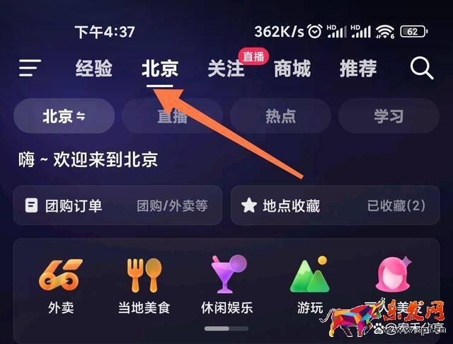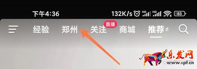 1、進(jìn)入到抖音的推薦頁面后,在上方導(dǎo)航欄中找到城市名字。