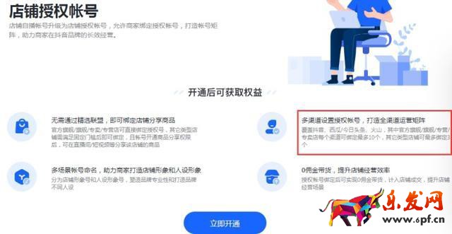 除了綁定一個(gè)抖音官方賬號(hào),同時(shí)你還可以點(diǎn)擊“店鋪授權(quán)賬號(hào)“,還可以再綁定3個(gè)抖音號(hào);綁定的這3個(gè)抖音號(hào)都可以0粉絲0門檻開通抖音商品櫥窗。