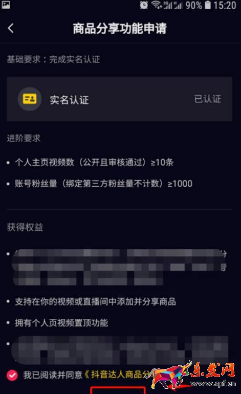 5.在商品分享功能限權(quán)的申請(qǐng)頁面,要做的第一步是要完成實(shí)名認(rèn)證,然后查看你是否能夠滿足下面的進(jìn)階要求,隨后點(diǎn)擊【立即申請(qǐng)】就可以開通抖音櫥窗了。