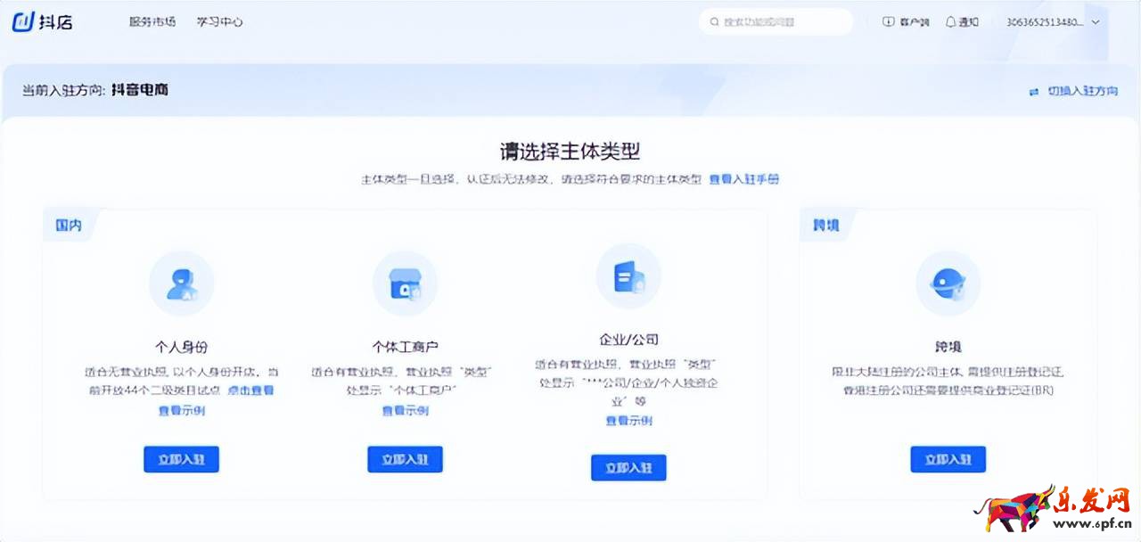 我們先在電腦端搜索【抖音小店】,進去官網(wǎng),點擊立即入駐,選擇手機號登錄注冊。