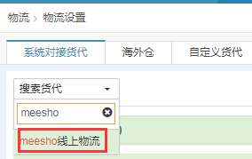 位置:【物流】--【物流設置】--【系統(tǒng)對接貨代】,啟用Meesho線上物流渠道,如下圖