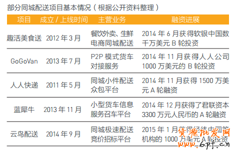 2014年6月,主打餐飲外賣、生鮮電商同城配送的趣活美食送獲得軟銀中國數(shù)千萬美元的B輪投資;同年11月,同城小件配送眾包平臺(tái)人人快遞的A輪融資金額達(dá)到1500萬美元。此外,主打同城貨運(yùn)配送的神盾快運(yùn)、藍(lán)犀牛、云鳥配送也分別在2014年底和今年年初宣布獲得千萬級(jí)別的融資金額。據(jù)不完全統(tǒng)計(jì),2014年下半年至今,國內(nèi)公開獲得千萬人民幣級(jí)別以上融資的同城配送