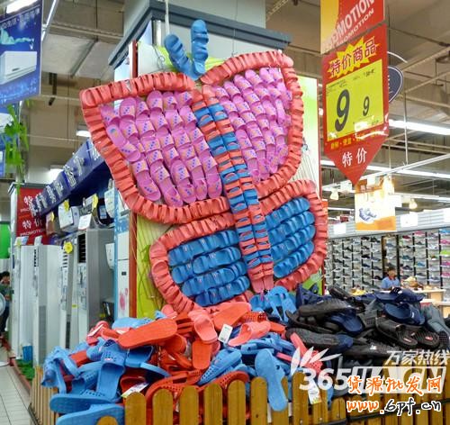 大潤發(fā)超市清溪路店涼拖堆成的蝴蝶