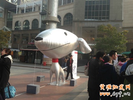 巨鐘下邊的人群,原來(lái)正在圍觀 京東 的雙十一促銷(xiāo)的預(yù)熱推廣。場(chǎng)地中央也是鐘表的圓圈,裝扮好的 京東 吉祥物JOY狗邀請(qǐng)路人上來(lái),一起玩“追趕”游戲,追上JOY狗,參與的觀眾就有獎(jiǎng)品拿??赡苁荍OY狗太萌太熱情了,現(xiàn)場(chǎng)真有不少大媽、小孩相繼上去做游戲。